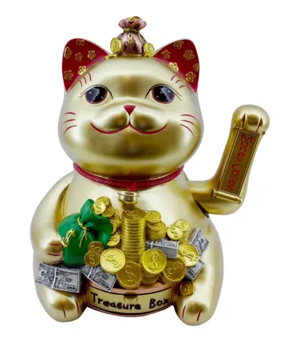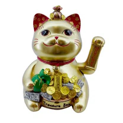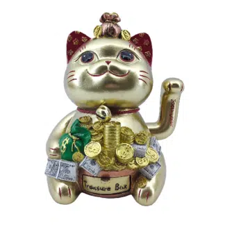 The Zhao Cai Mao statue is a symbol of prosperity and good luck in Chinese culture. It represents a cat that, with one paw raised, seems to invite fortune. Its name, “Zhao Cai Mao”, translates as “Wealth-Attracting Cat”, and it is especially known for its ability to attract abundance and financial success. It is often placed in shops, offices and homes as an amulet to encourage the arrival of money and opportunities. In addition, the cat often carries a bell or a gold ingot, elements that reinforce its association with prosperity and financial well-being.